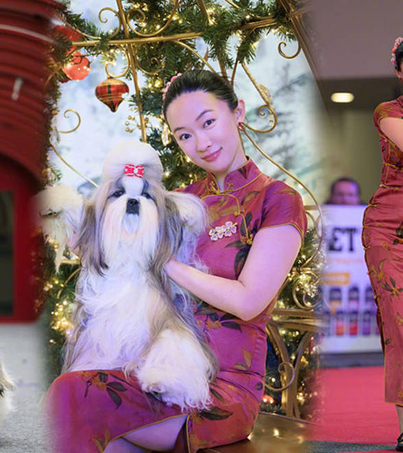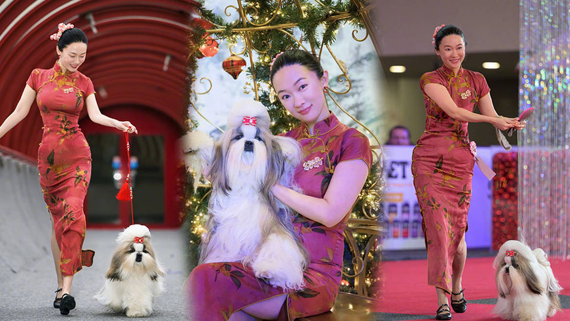 霍思燕带爱犬参加国际犬展!穿红旗袍性感明艳
