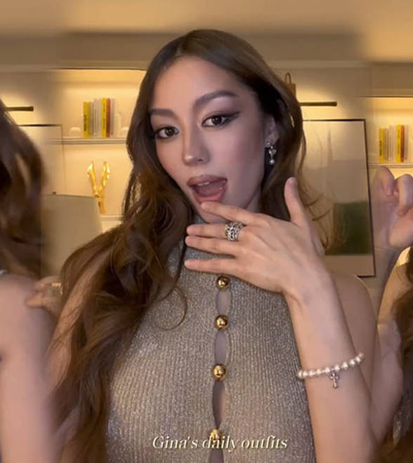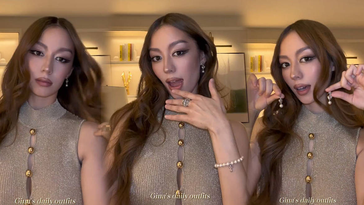 陈都灵穿鎏金亮片裙气质冷艳,环抱抬眸性感优雅