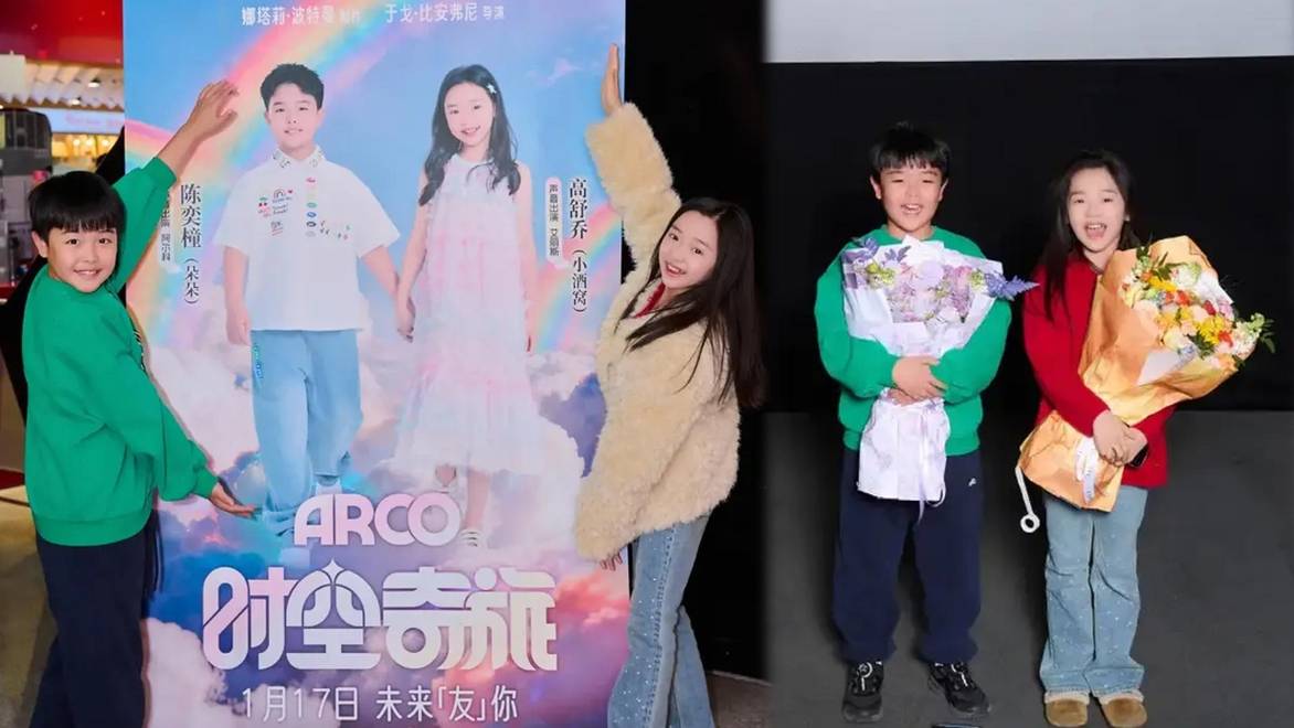 董璇女儿小酒窝与佟丽娅儿子朵朵参加线下观影会
