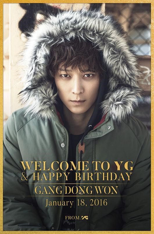 YG今公开了一张海报,海报正中央写着“WELCOME TO YG& HAPPY BIRTHDAY GANG DONG Won”等字样,姜栋元选择在自己生日这天签约YG,显得意义非凡。不久前,姜栋元和老东家合约期满,多家娱乐公司都有意与其签约,他与YG代表杨贤硕几次见面并进行深入交谈之后,最终决定签约YG。自此姜栋元和鸟叔PSY、BigBang、车胜元、崔智友等明星成为同门。
