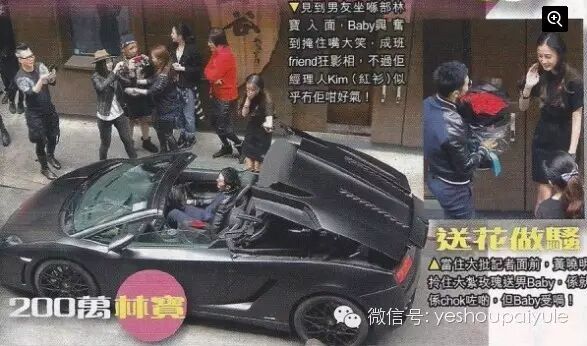 可能是因为只用来买外卖太浪费了,张智霖这两三百多万的兰博基尼用了没多久就转给了公司老板,而老板后来再转手卖给了黄晓明,最后,黄晓明把这两三手车送给了BABY~~