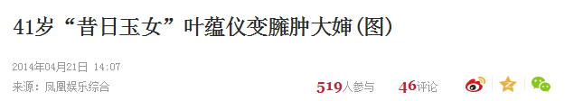 估计是破罐子破摔,2014年,叶蕴仪被媒体拍到身形又肥了一圈