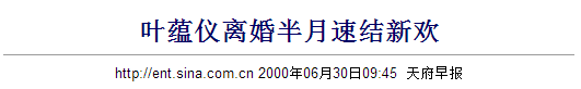 两人在2000年正式离婚,叶蕴仪后来谈及这件事时说: