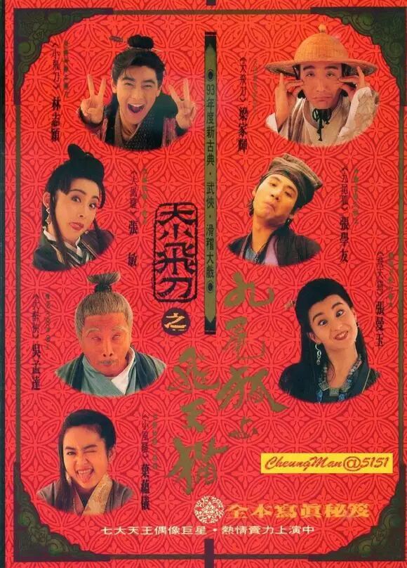 跟张曼玉、张学友、张敏、梁家辉、林志颖、吴孟达合作《九尾狐与飞天猫》(宣传备注是七大天王偶像巨星)↓↓↓