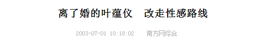 后来因为生活所迫,2003年叶蕴仪决定宣布复出拍戏,8年的隐息生涯足以让风水轮流转,当年玉女的风光早已不在,记者最关心的问题就是,“你当初离婚究竟是你老公背叛了你,还是你老公满足不了你?”一时记者招待会变成了发难会,有些人甚至将果皮和矿泉水瓶朝她头上砸来……