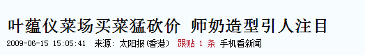 2009年,叶蕴仪被媒体拍到到菜市场买菜,被指形象身材一路下降。