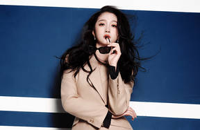 关晓彤浅卡其大衣搭配波浪卷发亮相活动