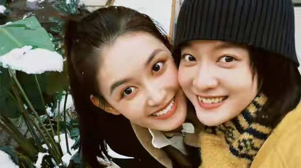 张雪迎与蒋依依雪地合照