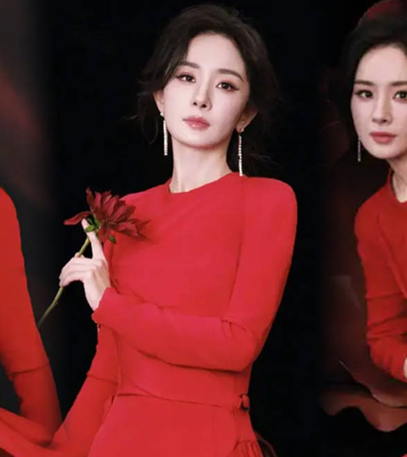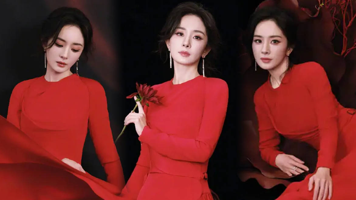 杨幂穿红裙性感热辣,眼神撩人散发成熟气质