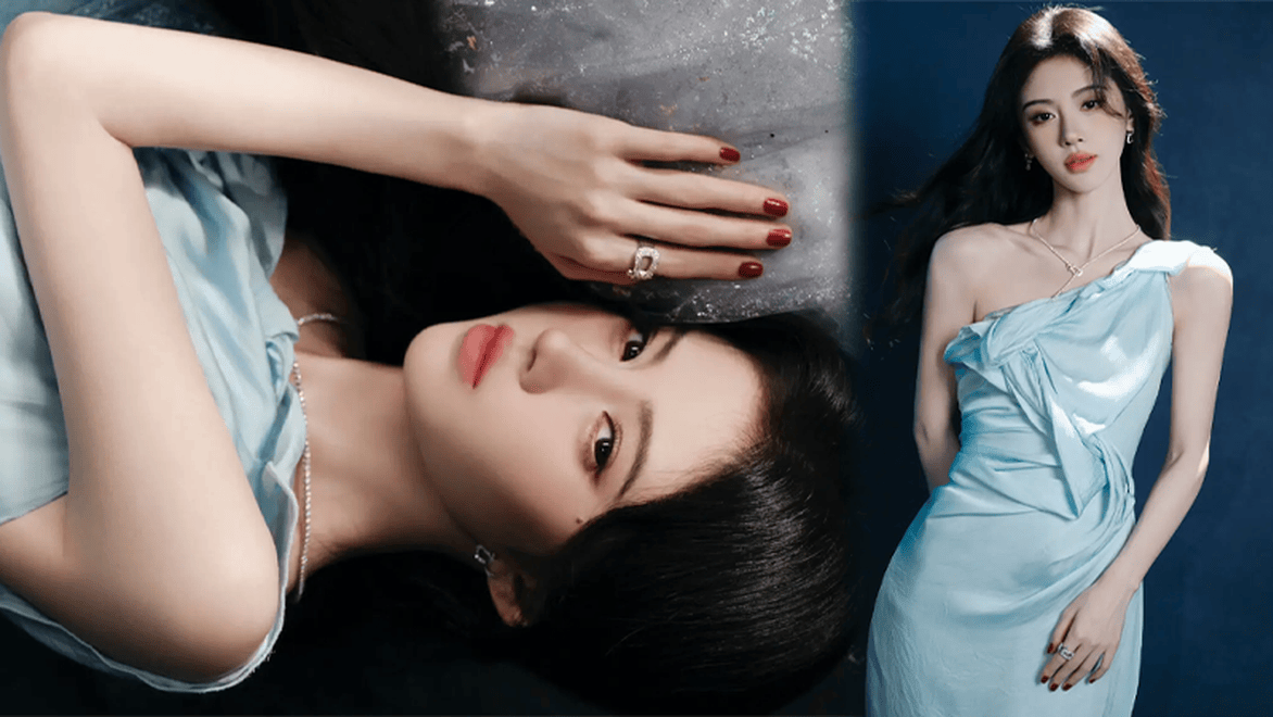 鞠婧祎穿冰蓝皱褶礼服,优雅妩媚又不失温柔灵动