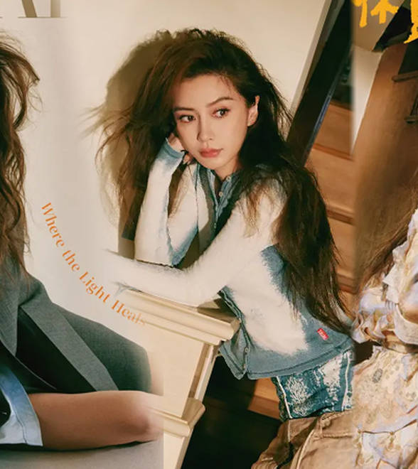 杨颖卷发红唇复古美艳,露美腿身材纤细好性感