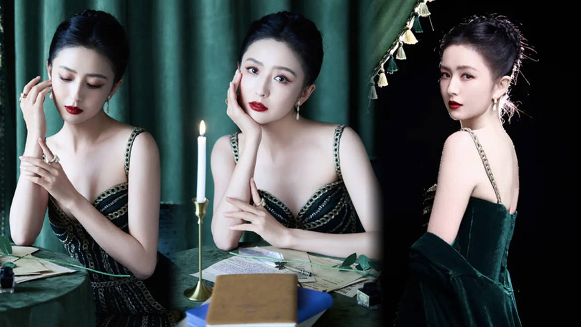 佟丽娅穿吊带长裙肩颈纤美,窈窕身姿优雅动人