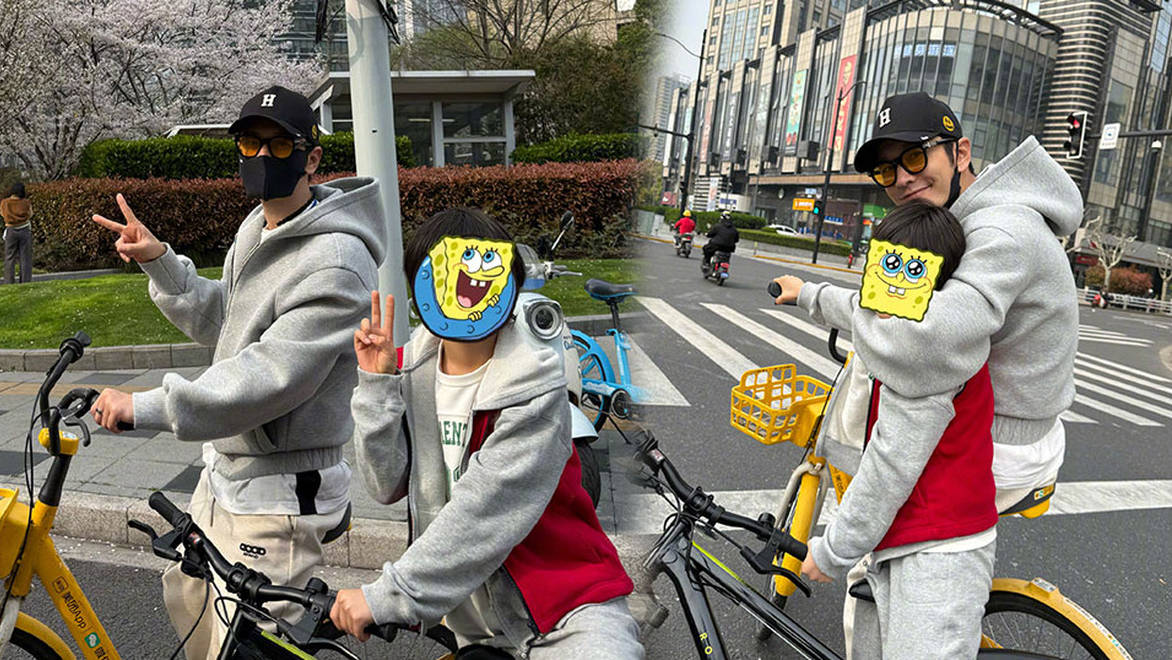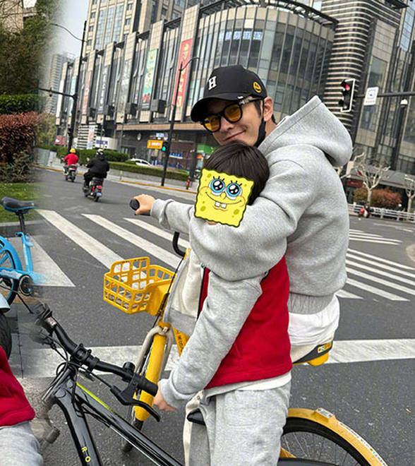 黄晓明与儿子一起春日骑行!小海绵活泼又可爱