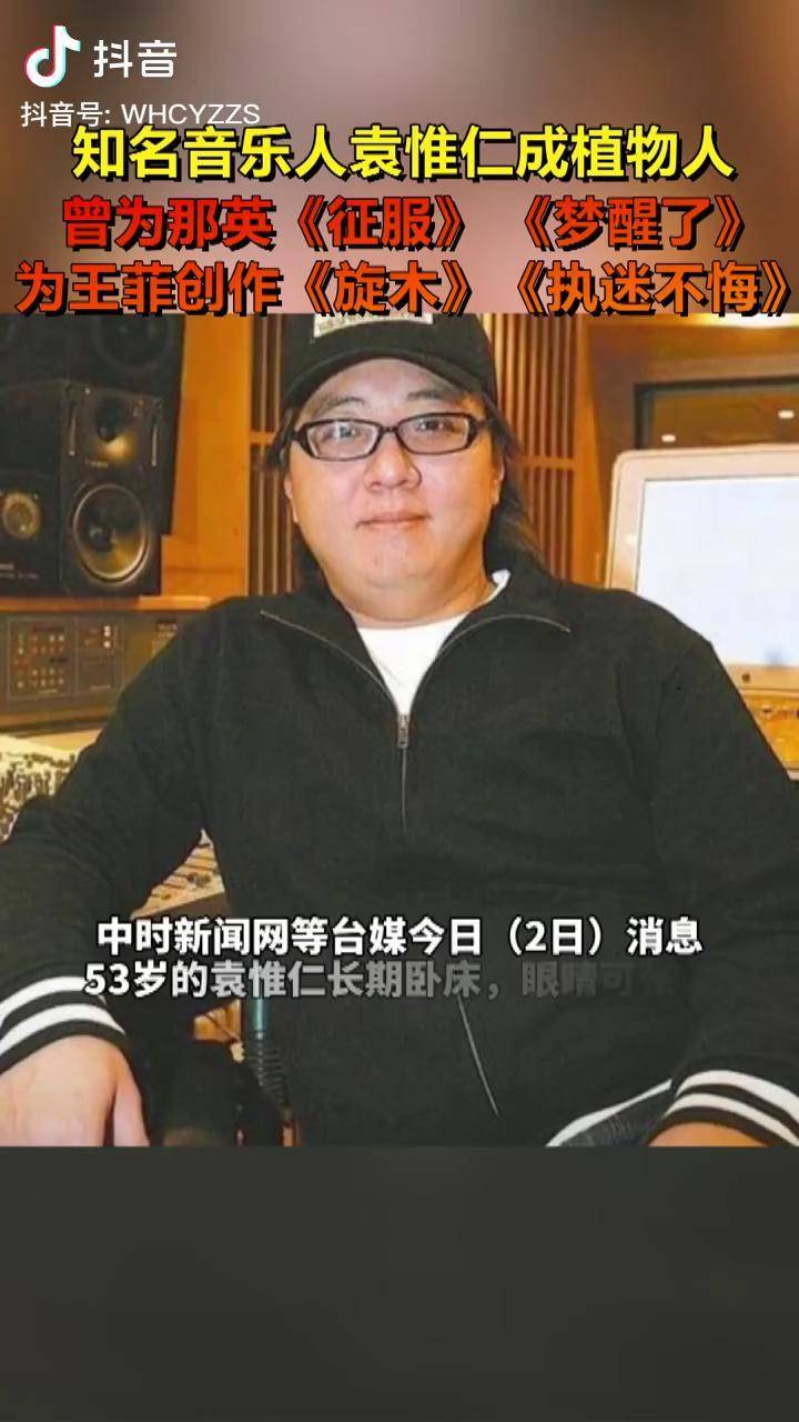 台媒:知名音乐制作人袁惟仁成植物人,曾创作《征服》等经典歌曲