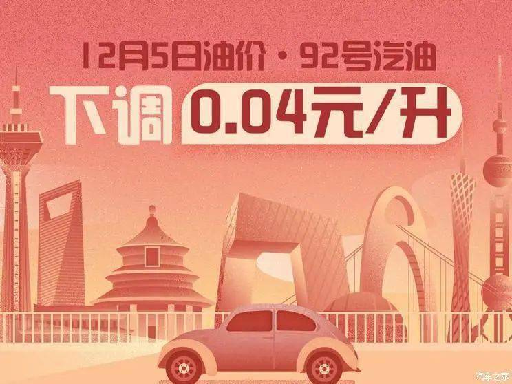 ● 92号汽油每升下调0.04元,加满一箱油将节省2元