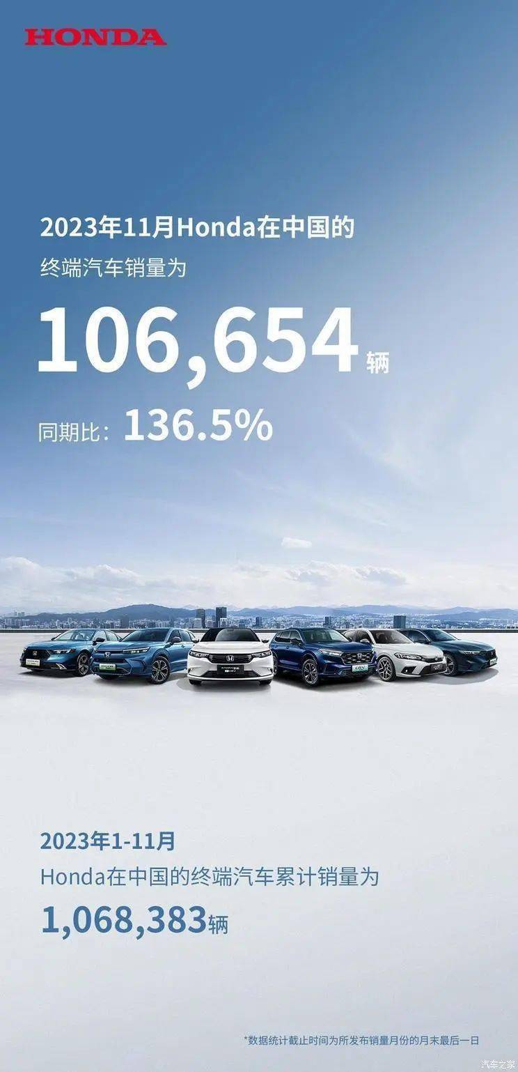 本田11月在华销量增长36.5%,累计销量超一百万,新能源转型加速