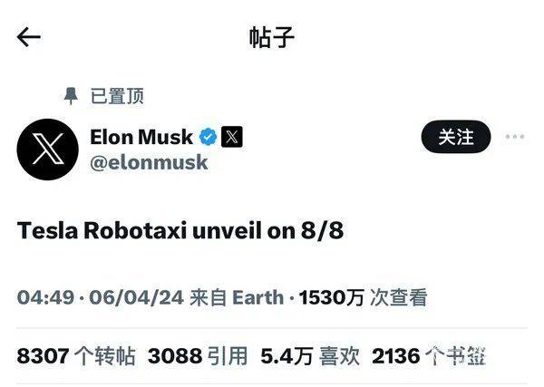 近日,特斯拉CEO马斯克在X平台上发文声称,特斯拉计划将于8月8日推出新一代无人驾驶出租车“Robotaxi”。顾名思义,这是由人工智能和自动驾驶技术控制的出租车,不需要司机,可以自主行驶到乘客指定的目的地。