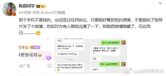 第二天上午,陈震发文回应,称手机不是自己的,也没有签署任何保密协议,只是看到手机很薄,一时兴起拍了照片发微博。