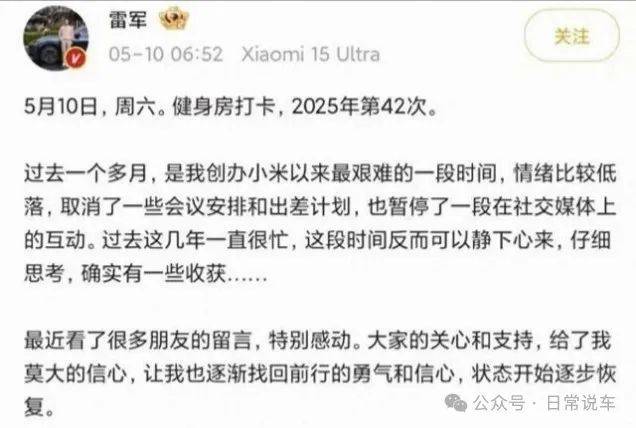 5月10日,雷军在社交媒体上发文称,过去一个多月是创办小米以来“最艰难的时期”。他还透露,自己因情绪低落暂停了社交媒体互动。