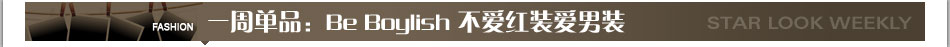 张歆艺的一身黑衣可谓恰到好处,上衣故作的撕裂设计让性感从缝隙中隐约传出,黑色裤装遥相呼应,帅气十足,大腰封的配搭也暗合了本季的流行趋势。可惜,在妆容上要更加努力哟! | |